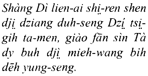 Рис. 215. Изречение из Библии (Иоанн, 3:16) в написании Ван-Чжао.