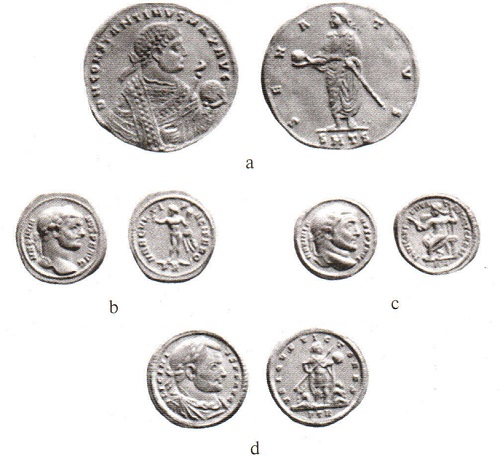 2. а. Константин, Ь. Максимиан, с. Галерий, d. Лициний
