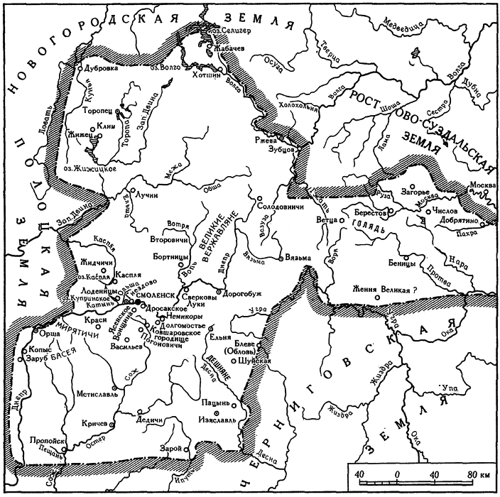 Рюрик в это время был, как мы знаем, соправителем и потенциальным соперником киевского князя. Певец умолчал и о том и о другом, он просто отнес Рюрика в один раздел со смоленским князем, вероломным, эгоистичным Давыдом. Не входя во все тонкости межкняжеской вражды, то прорывавшейся безудержной яростью, как было в 1180 г., то затаенной, как в 1185 г., автор «Слова» напоминает смоленским князьям, что и они оба когда-то тяжело пострадали от половецких стальных сабель. В 1177 г. летом, «на русальной неделе», т. е. в июне, половцы ворвались на Русь; Рюрик и Давыд были посланы против них, но «Давыд же бяше не притяги и бывше распре межи братьею», — вот когда начали их копья «розно петь». Половцы нанесли всем русским войскам страшное поражение. Святослав Всеволодич требовал суда над Давыдом, лишения его княжества. Об этих далеких и не очень приятных событиях и напомнил автор «Слова» князю Давыду, а заодно и Рюрику, как бы делая его ответственным за брата. Десятилетняя вражда Святослава и Давыда сделала строки «Слова», посвященные смоленскому князю, слишком скупыми и вежливо-неприязненными. Из них очень трудно выяснить, что представлял собою в то время Смоленск.