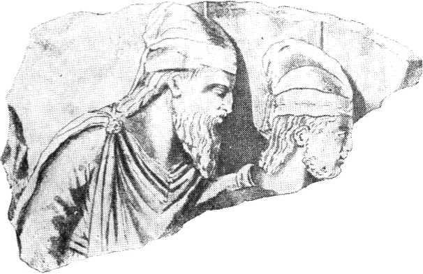 Скилур и его сын Палак. С рельефа, найденного в 1827 г. на городище Керменчик вблизи Симферополя (скифская столица Неаполис).