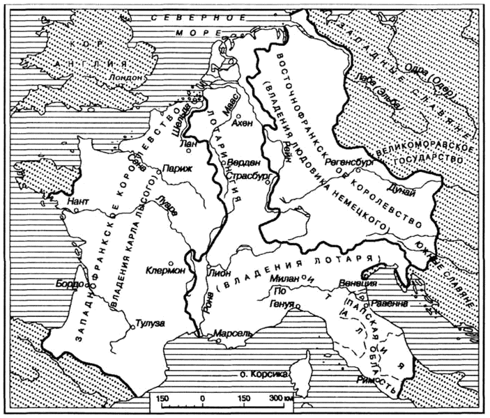 Раздел империи Карла Великого по Верденскому договору 843 г.