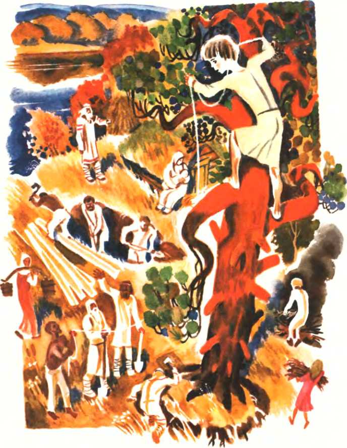 Епифанко влезал на дерево ловчее белки, у самой вершины привязывал к стволу верёвку и спрыгивал на землю. Мужики дружно, изо всех сил тянули верёвку, раскачивали дерево. Оно кряхтело, стонало, наконец, падало. За день по дюжине сосен, елей и берёз валили. А коли дуб попадался, трудились над каждым стволом долго. Тонкие деревья и кустарник выкорчёвывали мальчишки, а девчонки им помогали.