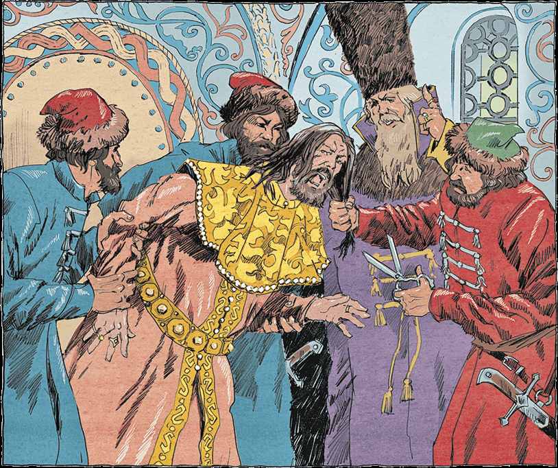 Попробовали уговорить Шуйского добром. Он заартачился. Тогда его взяли за руки и насильно постригли в монахи, превратив из Василия в инока Варлаама, после чего заточили в келью, под стражу.