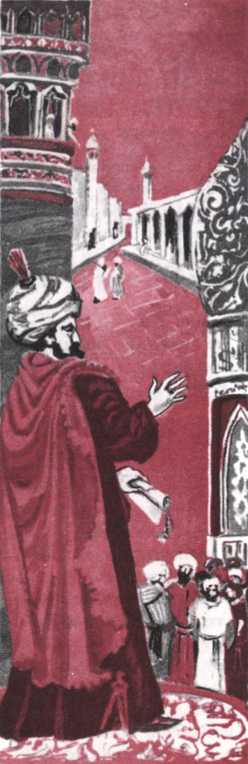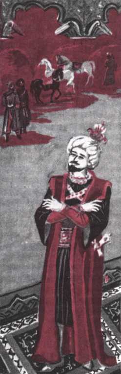 Он ехал на черном коне в сопровождении нескольких глухонемых слуг и задумчиво смотрел вдаль. Отъехав немного от городских ворот, он оглянулся, бросил взгляд на город, в котором прошла его жизнь, словно прощаясь с ним, и натянул поводья.