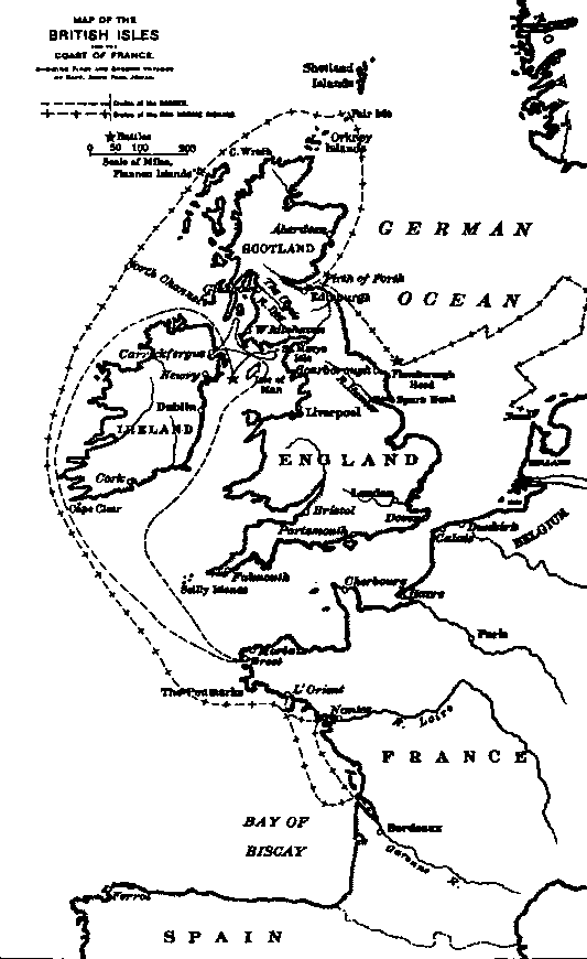Карта рейдерства П. Джонса на «Рейнджере» и «Добряке Ричарде» у берегов Англии