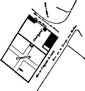 Теперь предстояло изучить место, где когда-то находилось кладбище, и попытаться разыскать могилу. Судя по старинным названиям улиц, кладбище располагалось в северовосточной окраине Парижа на стыке двух улиц — Гранж-о-Бель и Рю де Еклюзе Санта Мартина. В 1796 году принадлежавшая ранее городу территория кладбища была продана под застройку. Теперь этот городской квартал назывался почему-то Ле Комбат (Сражение), а располагавшаяся неподалеку станция метро — просто Комбат. Естественно, что ко времени поисков территория кладбища оказалась полностью застроена. К счастью, вскоре удалось обнаружить две карты 1773 года и 1794-го. На них было видно, что кладбище Святого Людовика соседствовало с небольшим подворьем, на котором размещались дом, хозяйственные постройки, конюшня и сад. По уровню кладбище лежало чуть ниже подворья и с подворья к нему вело несколько ступенек. Со временем их уровень практически сравнялся. Что обнадеживало, так это то, что, судя по обеим картам, территория кладбища была невелика — всего 40x40 м, и это, несомненно, давало надежду на благополучный исход поиска.