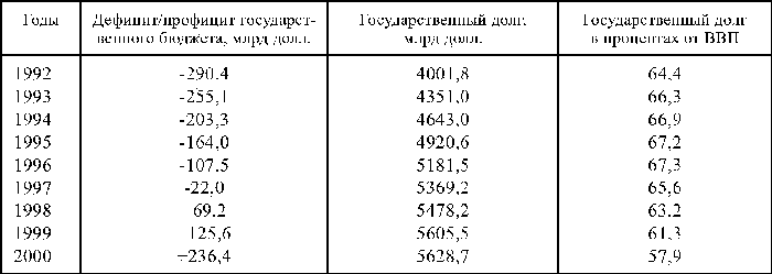 Бюджетный профицит (дефицит) и государственный долг в 1992 — 2000 годы