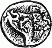 Рис. 4. Лицевая сторона древнейшей монеты — электрового лидийского статера царя Алиата.