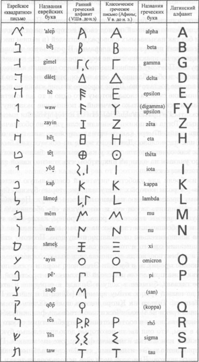 Когда финикияне проникли в бассейн Эгейского моря и греки познакомились с их письменностью, она привлекла их своей легкостью и простотой. Сложное слоговое микенское письмо, бывшее в ходу в Элладе в середине и второй половине II тысячелетия до нашей эры, к этому времени (конец II и начало I тысячелетия) уже прочно забылось. Только на Кипре иногда пользовались его местной разновидностью. Однако греки не механически заимствовали финикийское письмо, а заметно усовершенствовали его в соответствии с потребностями своего языка. И дело здесь не только в том, что они ввели некоторые дополнительные буквы, отсутствовавшие у финикиян, или слегка изменили форму уже имевшихся. Греки внесли и определенные принципиальные изменения, создав специальные знаки для обозначения всех гласных звуков. Для этой цели они использовали знаки финикийского письма, обозначавшие «гортанные» звуки, отсутствующие в греческой речи, а также «вспомогательные» знаки, указывавшие на гласный компонент слога. В отличие от финикиян греки разработали более или менее строго выдерживавшуюся систему, согласно которой каждый гласный звук мог быть обозначен только одним способом.