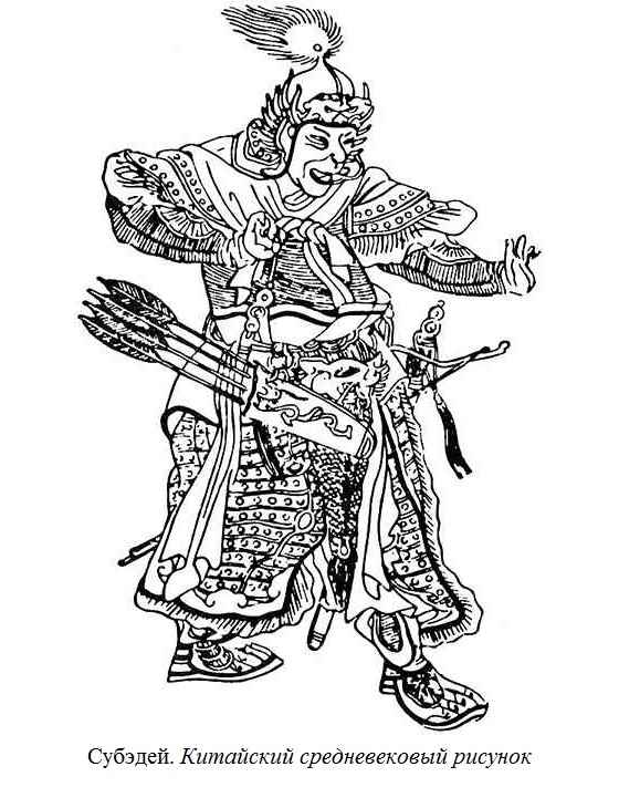 Судьба этого человека удивительна. Он происходил из северных, лесных монголов, которые, в отличие от монголов степных, не были с детства приучены к жизни в седле и виртуозному владению луком. Поэтому первоначально Субэдей выдвинулся благодаря не столько удали, сколько уму. По одной из версий, с четырнадцати лет он состоял при будущем великом хане – на первых порах просто прислужником, распа-