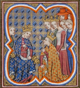 Король Иоанн дарует прощение Карлу Наваррскому (из Больших хроник)