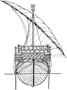 Генуэзские штурманы водили суда такого типа в Черное море. Двигаясь вдоль берега, они достигали Феодосии и Керчи.