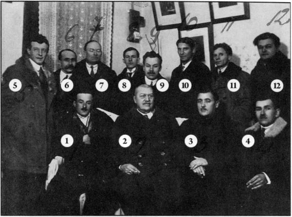 Руководство местной организации БРП Латвии: 1. барон С.Н. Нольде. 2. полковник П.Н. Бек. 3. М.А. Пашков. 4. поручик Е.Е. Сурмонин. 5. барон Л.Н. Нольде. 6. ст. лейтенант Б.А. Корн. 7. доктор Н.Ф. Петров. 8. Н.В. Тесловский. 9. полковник КМ. Дыдоров. 10. поручик В.П. Масленников. 11. Ухтин. 12. Р.М. Зилле