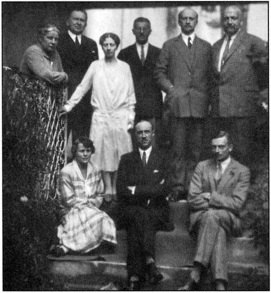 В замке Зеон. Стоят слева направо: О.Н. Лейхтенбергская, Н.М. Котляревский, Н.Н. Ильина, С.А. Соколов, И.А. Ильин, А.А. фон Лампе. Сидят: Е.Н. Трибинская (ур. Лейхтенбергская), П.Н. Врангель, А.К. Трибинский. Предположительно фото П.Н. Краснова от 2 июля 1926 г.