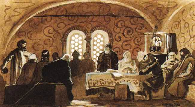 Выросла до небывалой силы и высоты и власть московского государя-самодержца; но зато тяжелым бременем ложилось на него правление. Замолкли бурные веча в Новгороде и Пскове, стал народ и тут отвыкать от прежних порядков; разучивался сам радеть о своих нуждах и делах, а в других местах уже и раньше простолюдины называли себя «сиротами» и «людишками» и все надежды свои и упования полагали на государеву милость и защиту: сильно примят был народ во времена удельных сумятиц и татарских погромов и поборов — не о вольностях и правах думал он, а о хлебе насущном да о защите от насилий. Чем могучее становился самодержец, чем грознее он был для внешних врагов и бояр, творивших насилия народу, тем простому люду жилось легче. «Где царь, тут и правда, и страх, и гроза», — стал говорить народ; но сложилась у него и другая пословица: «Царь без слуг, как без рук!». Нужны были ему верные слуги-помощники. Прежних вольных дружинников, бояр, без совета с которыми не вершилось никакое дело, уже не было. Вместо них были бояре, которые больше старались «угодить» и «норовить» государю, чем говорить правду. Много было у него угодливых прислужников, но мало верных слуг, советников и помощников.