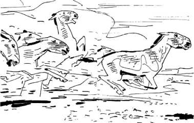 Мы очутились в середине табуна. Тучи гравия летели из-под копыт в ветровое стекло. Никогда в жизни я не был так взволнован! До конца дней мне запомнится это мгновение».
