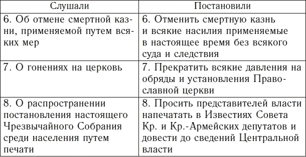 Нужны ли здесь комментарии? По сути, власти было сказано, что народ не принимает ее методы правления и не согласен ни с одним из пунктов коммунистической доктрины. Видимо, не веря, что будет выполнен пункт 8 резолюции, народ сам стал ее распространять по уезду. Даже волостные съезды советов принимали аналогичные решения[244].