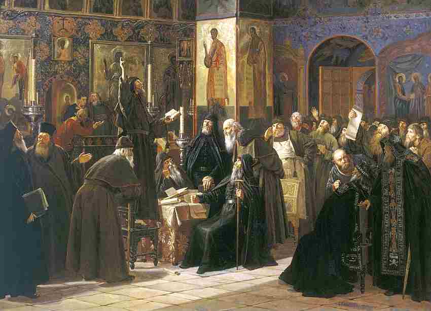 Время тянулось; конца разладу не предвиделось. Избирать нового патриарха при прежнем, который теперь не желал отказаться от этого сана, было совсем не удобно — можно было опасаться двоевластия в церкви.