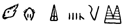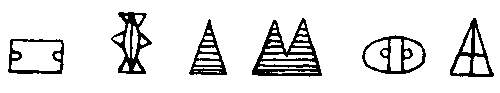 Рис. 114. Хеттские иероглифические знаки «дом», «солнце», «город», «страна», «бог», «царь».