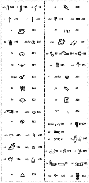 Впрочем, следует отметить некоторый прогресс в данной области и в период, предшествующий этому всеобщему натиску. Так, французский исследователь Ж. Менан в 1890 году открыл, что рисуночный знак, которым начинались многие надписи и который изображает человека, указывающего на самого себя, означает «я» и соответствует подобному же египетскому иероглифическому знаку. Сейс, между прочим, полагал, что изображенный в знаке человек показывает на свой рот и сам знак означает «я говорю» или, в третьем лице, «он говорит».