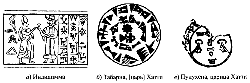 Рис. 126. Хеттские иероглифические и клинописные печати.
