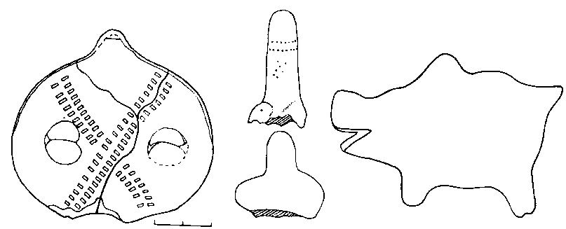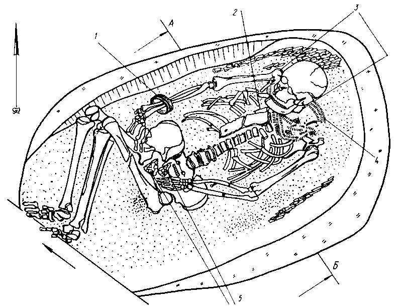 Рис. 100. Залишки поховання заможного представника племен скелянської культури (могильник біля м. Кривий Ріг, поховання 2):