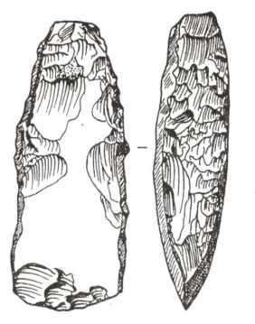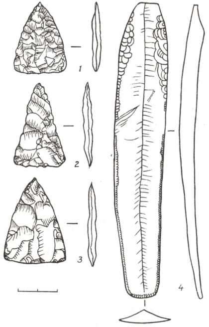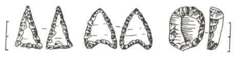 Рис. 101. Крем’яні вістря до стріл та ніж — характерні вироби скелянців: