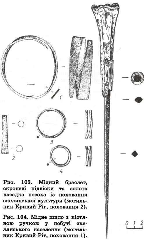 Всі названі вище культури або культурні групи в археологічній термінології відповідають певним людським спільностям, населення кожної з них мало яскраві особливості в побуті та господарстві, в походженні та поховальному обряді, займало свої території, існувало в різний час або одночасно, мало специфічні риси відмінності в соціальному устрої та віруваннях. Найдавнішими з вищеназваних були племена скелянської культури, що з’явилися на історичній арені наприкінці першої половини IV тис. до н. е. Саме це населення репрезентувало перші пастуші групи скотарів у степовій зоні України та на півдні лісостепу. Їхньою постійною територією проживання можна вважати Дніпро-Донське межиріччя. Щодо походження, то як показано вище, генетичну основу скелянців складали носії нижньодонської культури, що входили до маріупольської спільності. Археологічним свідченням появи скелянських племен вважається існування на Нижньому Дону IV шару Раздорського поселення, а на Нижньому Дніпрі — відповідного горизонту поселення Стрільча Скеля (с. Волоське). В поховальному обряді відбуваються суттєві зміни: замість неолітичних колективних могильників з випростаними померлими з’являються окремі скорчені поховання на спині, місце поховання яких відзначалося вже певними зовнішніми ознаками, зокрема кам’яними закладками, першими земляними спорудами.
