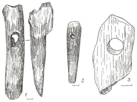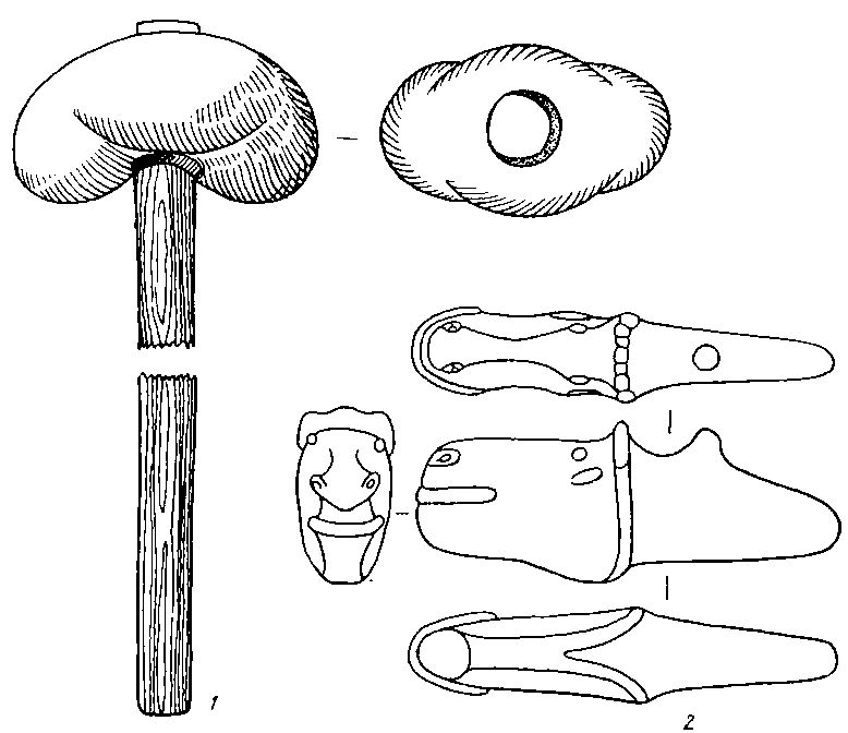Рис. 105. Кам'яні булава та скіпетр як ознаки влади верхівки скелянського населення: