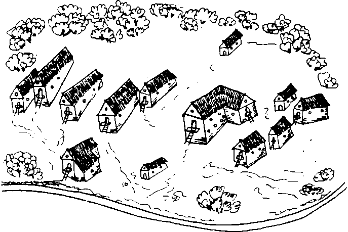 Рис. 61. Поселення Коломийщина І на Київщині. Реконструкція Т. С. Пассек.