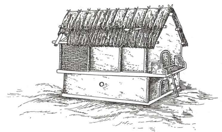 Рис. 64. Реконструкція двоповерхового житла з поселення Раковець. Автор К. К. Черниш.