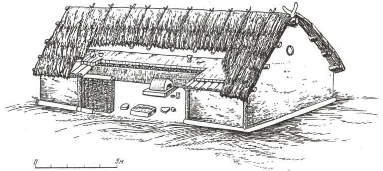 Рис. 65. Реконструкція будинку з поселення Ленківці. Автор К. К. Черниш.