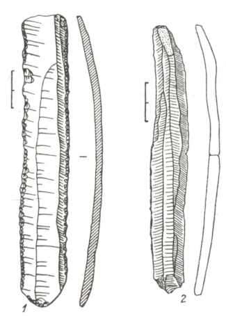Рис. 85. Крем’яні ножі (1 — Усатове, 2 — Євминка).