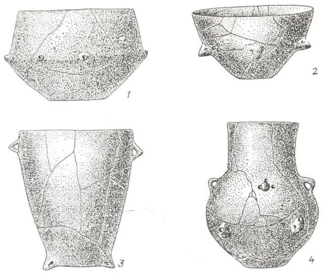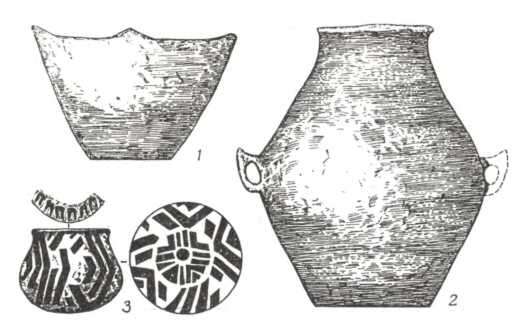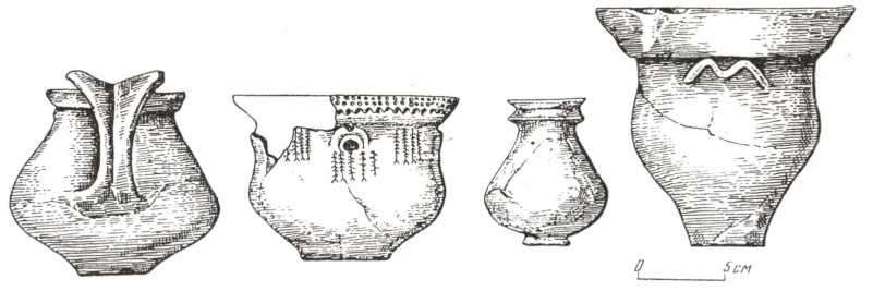 Рис. 109. Нові форми посуду, привнесені у степи населенням животилівсько-вовчанської групи: