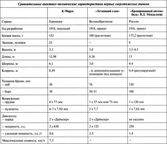 Сравнительные тактико-технические характеристики первых сверхтяжелых танков.