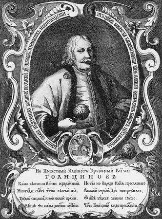 Князь В. В. Голицын. Гравюра Л. Тарасевича.