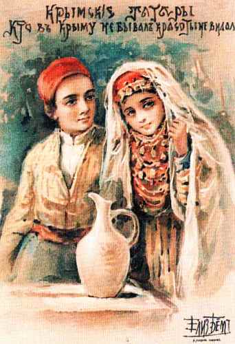 «Татарина, — говорит он, — можно узнать с первого взгляда. Росту татары по большей части ниже среднего, коренастые, широкоплечие, голова у них огромная, лицо почти круглое, лоб открытый, глаза черные и узкие, нос короткий, цвет лица смуглый, волосы черные, как смоль, и грубые, как лошадиная грива. Все они воины крепкие и мужественные, приученные с малолетства презирать труды и непогоду: с семи лет они оставляют свои кантары (юрты на двух колесах), спят всегда под открытым небом и едят только то, что сами добывают стрелами, ничего не получая от родителей. Таким образом, научившись с детства метко попадать в цель, они на 12-м году отправляются в поле против неприятелей. Татарки ежедневно купают своих детей в соленой воде для того, чтобы кожа их загрубела и сделалась нечувствительною к холоду, чтобы они не боялись простуды даже в случае переправы чрез реки в зимнее время…