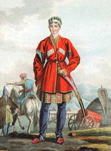 Крымские татары делились, кроме князей (то есть знатнейших), на уланов, поземельных собственников, составлявших высший военный класс, и казаков, низших воинов, которые владели только домами, занимались разъездами и набегами на пограничные государства и составляли как бы пограничную стражу. Такое же военное значение, как татарские казаки, имели и южнорусские. (В Московской Руси, как известно, казаками называли не только вольных воинов и пограничных стражников, но и вообще свободных рабочих, гулящих людей.)