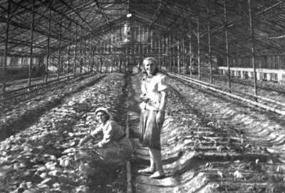 Теплицы совхоза имени Петрорайсовета на Главной улице, на противоположной стороне от «графского дома». Фото середины 1940-х гг. из семейного архива А.Г. Паламодова