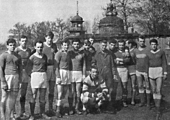 Во все годы Коломяги служили очагом спорта. На фото — команда Физико-технического института на стадионе возле церкви Св. Дмитрия Солунского. Фото 1967—1968 гг. из семейного архива В.З. Васильева