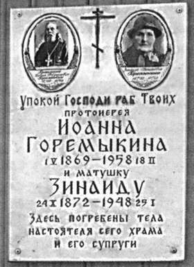 Иоанн Горемыкин, сроднившийся с Коломягами, скончался 18 февраля 1958 года. Его, а также и его супругу, матушку Зинаиду (она умерла 25 января 1948 года), похоронили под алтарем коломяжской церкви, посвященную им мемориальную доску можно увидеть на фасаде здания. В день прощания с отцом Иоанном море людей окружало коломяжский храм...