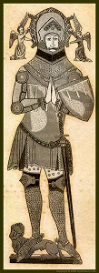 Сэр Николай Дагворт; с латунного изображения (1401 г.) в Блинклинге, Норфолк. Обратите внимание на горизонтальную перевязь, опоясывающую его бедра