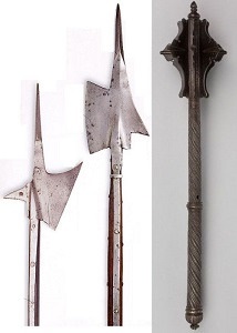 Слева: две алебарды; справа: пернач