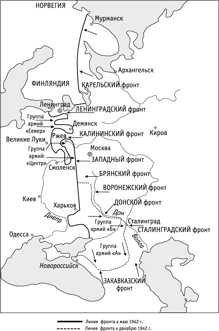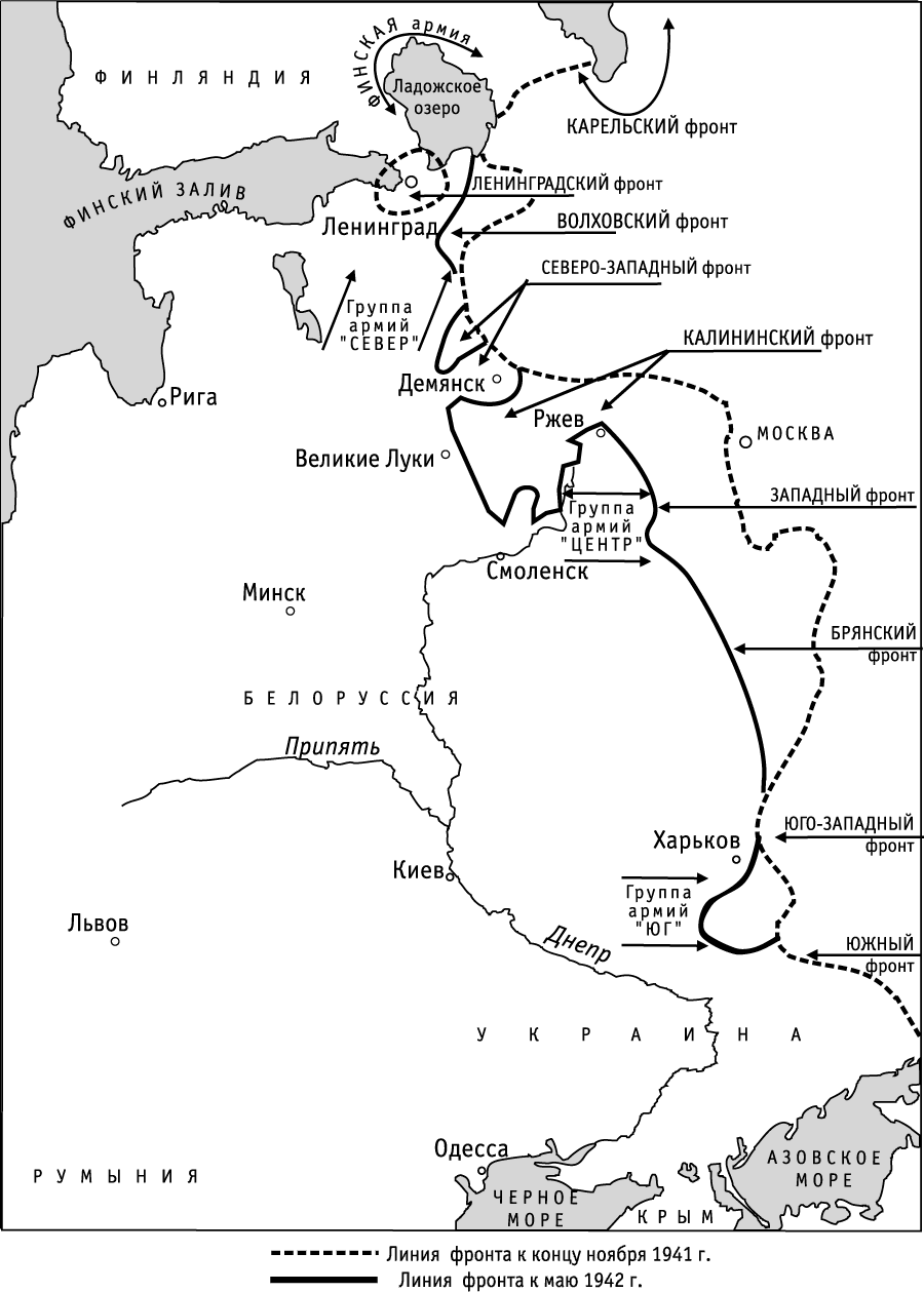 Основные усилия были по-прежнему сосредоточены на московском направлении. В ходе боевых действий советские войска вышли в тыл группы армий «Центр». Ее соединения были вынуждены воевать на два фронта, с трудом отбивая натиск Красной армии. Группа армий «Север» также попала в исключительно тяжелое положение, так как часть ее сил была окружена нашими войсками под Демянском. Кроме того, еще в ноябре 1941 г. советские войска нанесли ей поражение под Тихвином, разрушив план двойного окружения Ленинграда. Группа армий «Юг» под ударами советских войск оставила Ростов-на-Дону и также перешла к обороне.