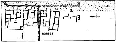 Находки в этих домах имели бытовую утварь. Например, в одном из помещений Дома 4 найдена небольшая подставка под кухонные сосуды из лаконской плитки, указывающая на приготовление пищи. Есть очаги и в других домах. В Доме 3 найден колодец, закрытый блоком с круговым вырезом, стенки колодца облицованы щебнем. Тем не менее, эти здания гораздо больше обычных домов того периода и в них отсутствует обычная стратиграфия накопления бытовых отходов. Это заставляет предположить официальный характер сооружения. На это указывают и артефакты, многие из которых отмечены надписями о принадлежности святилищу. Разумно считать данный комплекс сооружений – местом для размещения жрецов, смотрителей святилища или гелланодиков, привлекаемых на короткий период проведения игр. Датировка использования этих помещений – классический или эллинистический периоды.