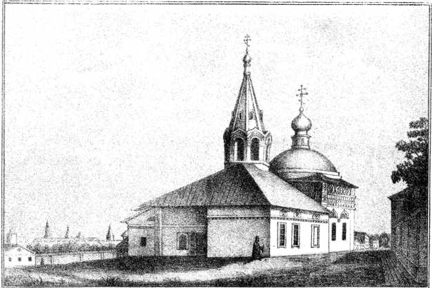 Снаружи Сергиевская церковь византийской архитектуры с двумя главами: одна над главным храмом, другая над Никольским приделом; на обеих главах золоченые прорезные кресты. Вместо карнизов Сергиевская церковь отделана кафлями из цветного гипса, на которых изображены разные птицы; но эти кафли при последней отделке церкви забелены. О них один европейский путешественник, видевший Сергиевскую церковь в 1827 году, говорит как о художественном произведении старины, заслуживающем особенного внимания[402]. У этой церкви колокольня очень низенькая, шатровая.