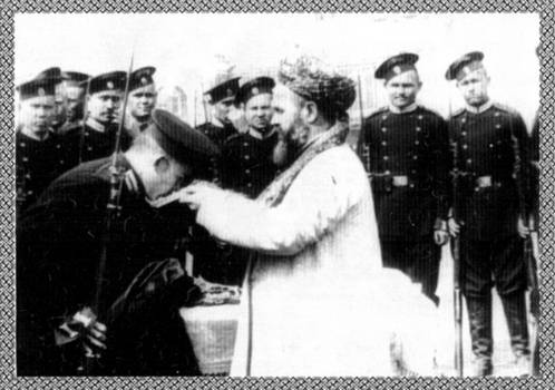 Мулла Хусаин-Сеид Бурхан во время принятия присяги у мусульман. Москва, Красная площадь. 8 августа 1914 года.