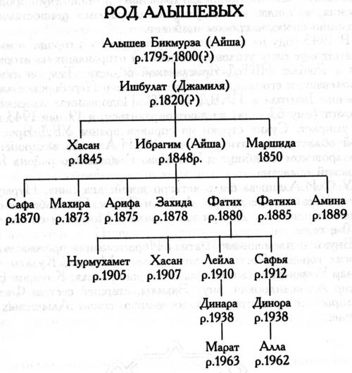 В семейном архиве Алышевых сохранились имена многих представителей этого старинного рода. Первым в списке значится Бикмурза — прадед Фатиха Ибрагимовича.