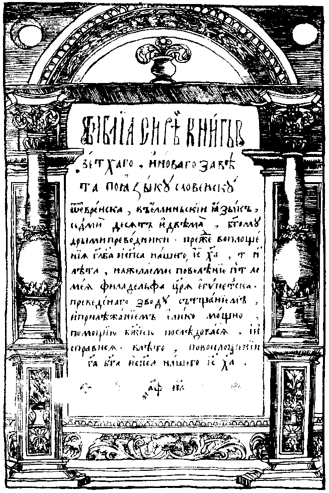 Титульная страница острожской «Библии», напечатанной И. Федоровым. 1581 г.