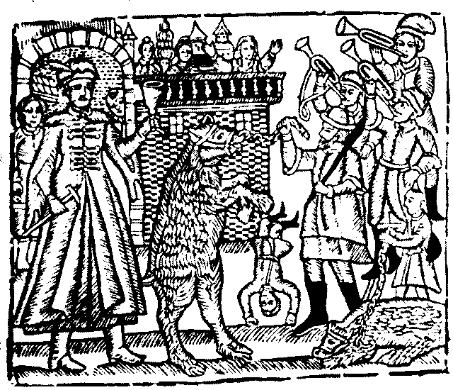 Во второй половине XIII— первой половине XVI в. получило дальнейшее развитие такое явление в истории театра восточных славян, как представления скоморохов — народных лицедеев, певцов, музыкантов, танцоров, клоунов, фокусников, акробатов, борцов, дрессировщиков. Скоморошество возникло и развилось вместе с народными праздничными играми и некоторыми обрядами задолго до объединения восточнославянских племен в Древнерусское государство. Древнерусские писатели и летописцы определяли народных лицедеев словами игрец, гудец, свирец, сопельник, плясец, глумец, глумотворец, смехотворец, прелестник и др. Со второй половины XIII в. в письменных памятниках древнерусских авторов для их обозначения употребляется слово скоморох. Этимология этого слова до сих пор не установлена, хотя существует множество научных гипотез.